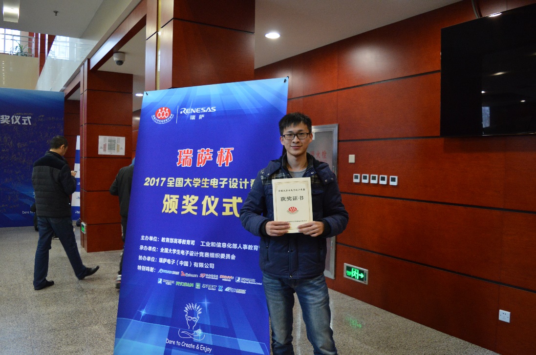 功夫不负有心人,最终他和他的队友取得了2017年全国电子设计大赛全国一等奖的优异成绩,“蓝桥杯”全国软件信息技术专业人才大赛也获得了全国三等奖的成绩。