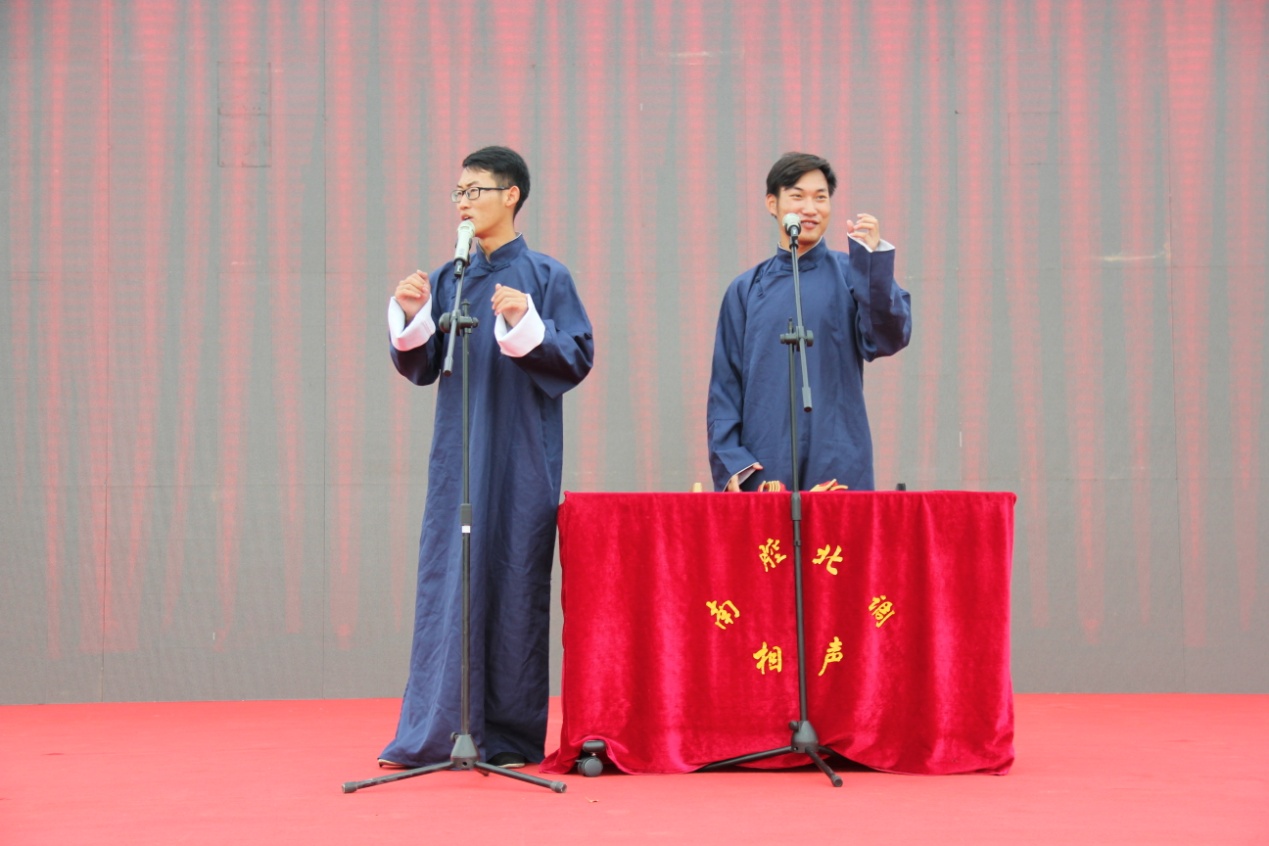 在毕业前的几十天,张祺同学仍发挥自己的优势,为校级院级各项文艺晚会服务,为丰富同学的课余文化生活贡献自己的一份力量,让相声之花开遍河海。
