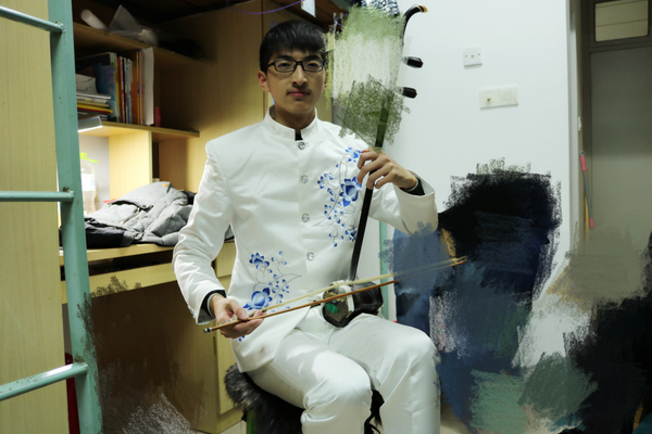 他军训时就通过选拔参加了新生群舞“鸿雁”的演出,本可以留在舞蹈团的他反而留在了民乐团。他说学习二胡七年,希望能够去适合自己的地方发光发热,事实证明也是如此。刚进民乐团的他就和乐团伙伴一起斩获江苏省大学生艺术展演的第一名,因为出色的表现,他还被选为参加全国大学生艺术展演,并且斩获一等奖,创造了了校史。不仅如此,每年的迎新生晚会、跨年晚会、专场音乐会也有他活跃的身影。他还能积极带动宿舍同学一起观看文艺演出培养情趣,在班级内举办体育活动活跃氛围,他们的宿舍成功创建为文体标兵特色宿舍。