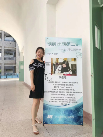 “学生工作更像是一个舞台,我们不是演员,亦不是观众。我们是舞台上的灯光,是舞台边的音响,我们所做的,是把舞台上旋转跳跃的演员照亮,让更好听更动人的声音为更多人所欣赏。”有一分热就发一分光,全心全意为同学服务,这便是她做学生干部的初心和使命。