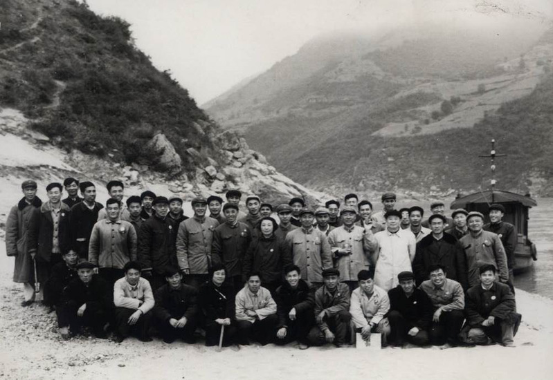 上世纪70年代,刚“解放”不久的钱正英下工地检查工作,与基层职工和部队指战员合影。