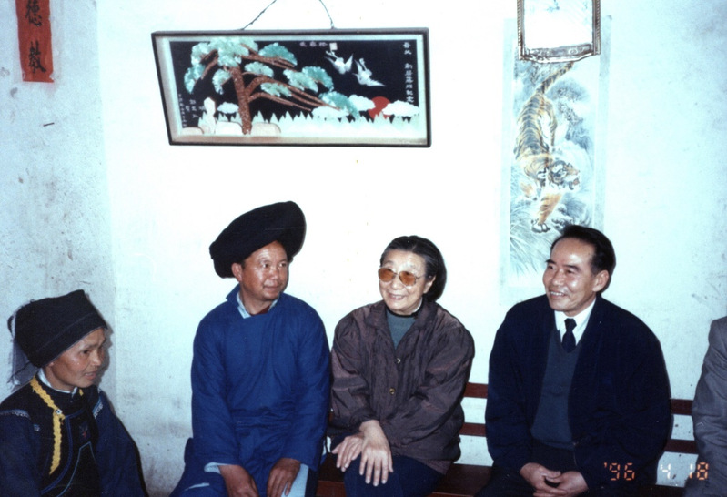 1996年,钱正英在广西考察,深入少数民族群众家中访贫问苦。